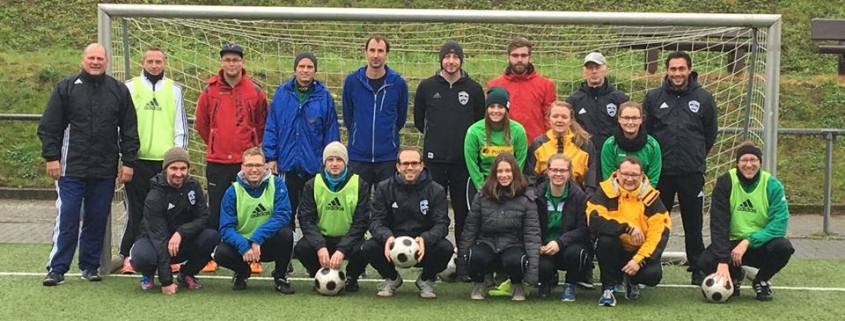 Mit Beginn der neuen Karneval-Saison am 11. November absolvierten wir den letzten Teil des Lehrgangs. Mit Kaffee versorgt und einem warmen Sportlerheim legten wir um 8:30 Uhr los. Sebastian Weber war auch am Final-Tag zu Gast und referierte zu den Grundlagen des Fußballspiels sowie Teilbereichen der Kondition und Koordination. Nachdem wir die bisherigen Lehrgangs-Inhalte reflektiert hatten ging es in die Mittagspause. Die Reiler Gaststätte SALOON versorgte uns mit leckeren Hamburgern. Zurück am Sportplatz legten wir gut gestärkt um 13:00 Uhr alle die schriftliche Prüfung ab. Alle Teilnehmer haben mit Bravour bestanden!